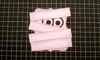 This mummy treat-box was something I found and copied. I believe credit for the design goes to Patti Lee another Stampin' Up! demonstrator. Finished size is 3 3/4" x 4 5/8".